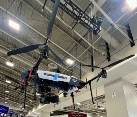 This year they exhibited a scaled down version of their RWS mounted to an IAI Fire Storm APUS 60 quadcopter which was developed specifically for this application. It is fuel powered and offers 3 hours of endurance.